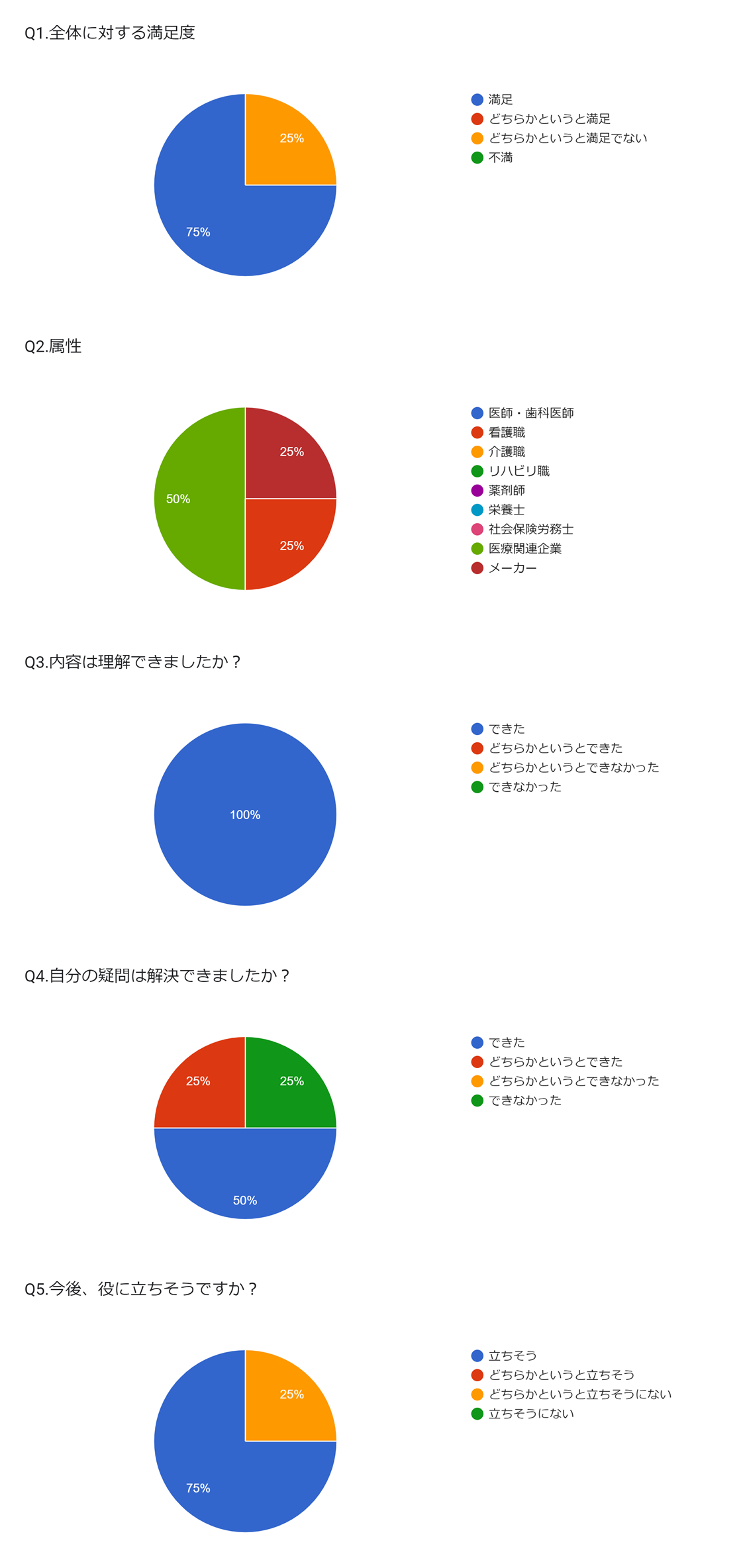 「医療と介護には溝がある」ことで、「衝突がある=垣根がある」前提を正しく認識し、そのうえで実際におこなわれていることをデータをふまえて詳しくお話しいただきました。これまでの高齢化の進展と高齢者を取り巻く状況が変化している現状と、それにともなったさまざまな問題だけではなく、介護の原点とは何か、本当の目的も改めて認識することができました。