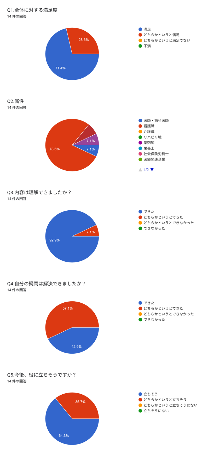 • 病院で働く助手の現状について理解できました。とても楽しく聞かせていただきました。