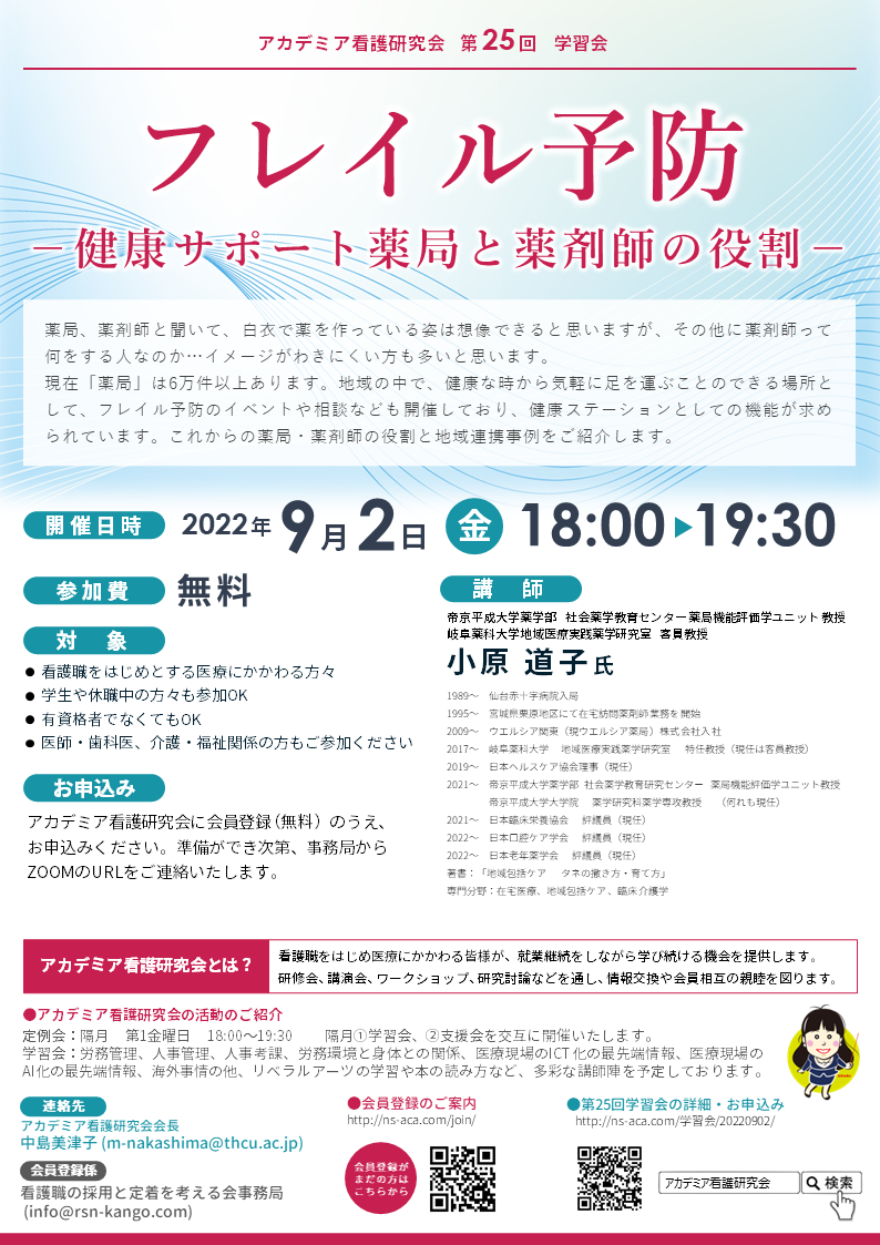 第25回学習会◆フレイル予防-健康サポート薬局と薬剤師の役割-