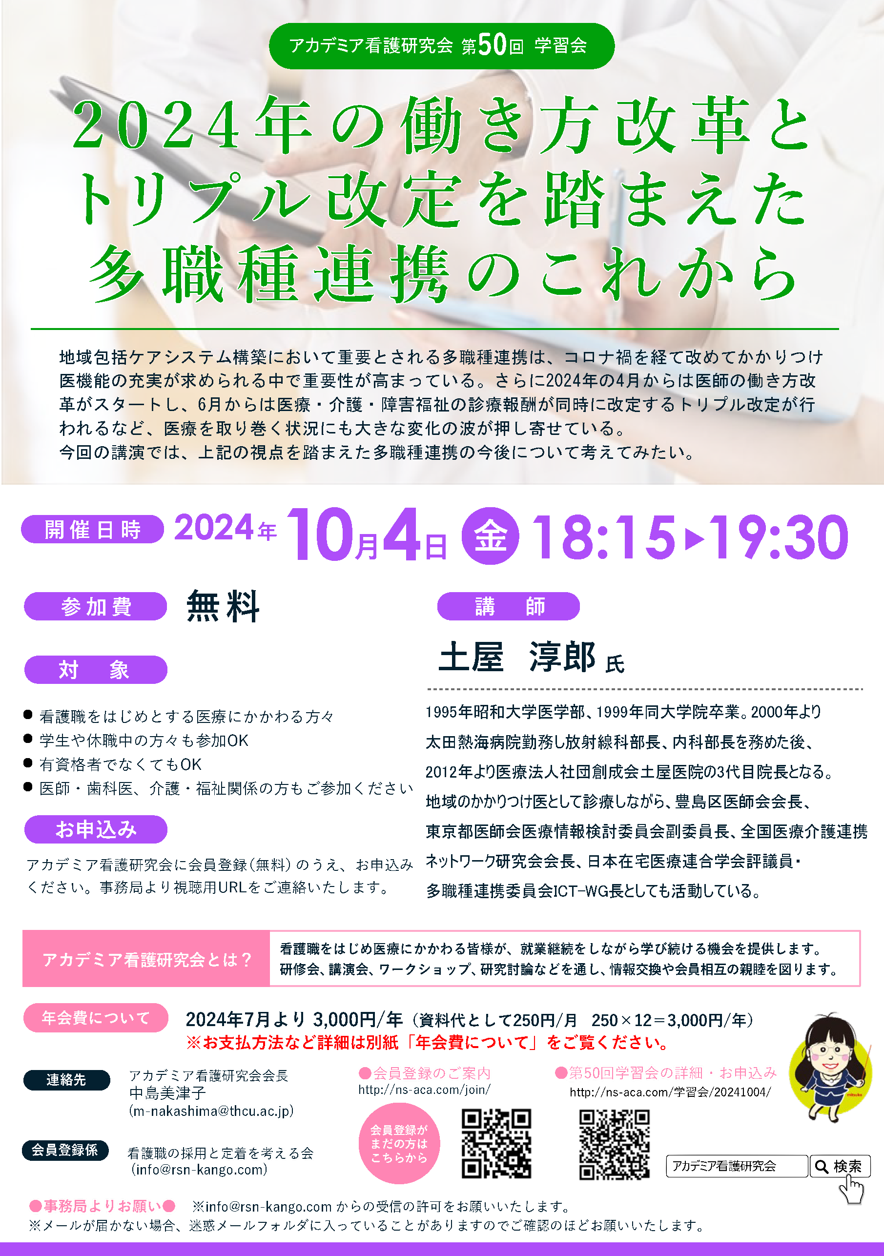 第50回学習会◆2024年の働き方改革とトリプル改定を踏まえた多職種連携のこれから